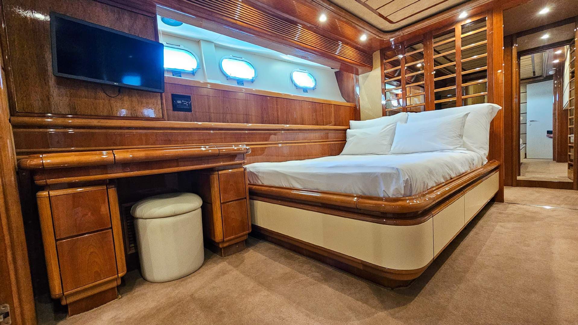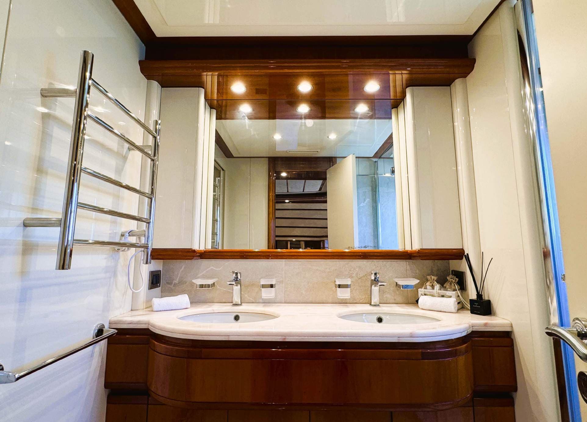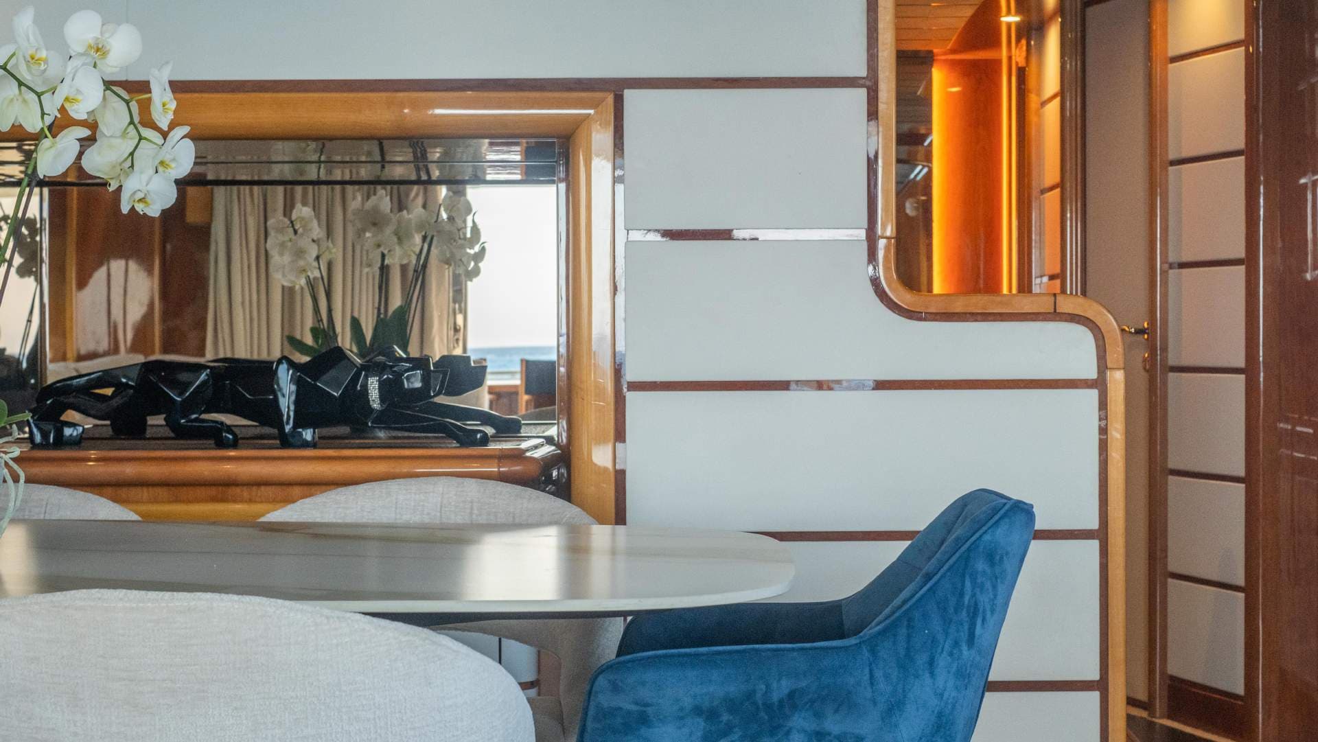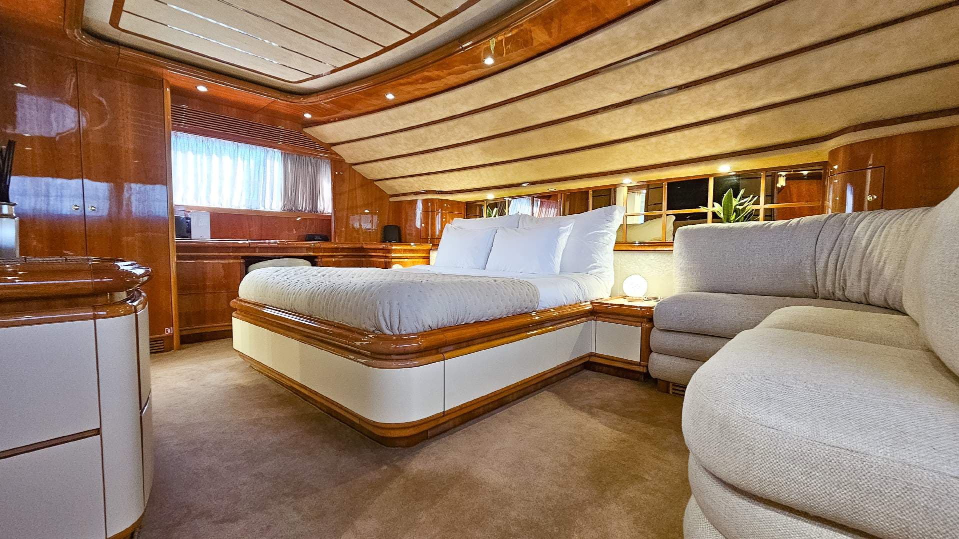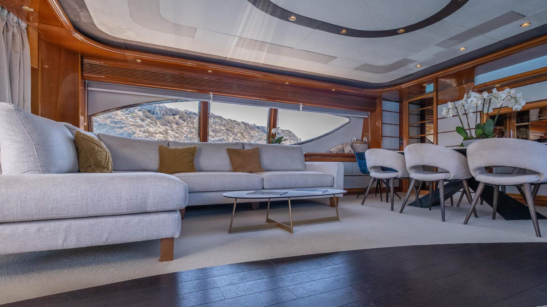 El Ferretti 94 YOLO TOO ofrece amplios espacios sociales, camarotes de lujo y servicio gastronómico a bordo. Con jet-ski, paddleboards y juguetes acuáticos para un día perfecto en Ibiza.