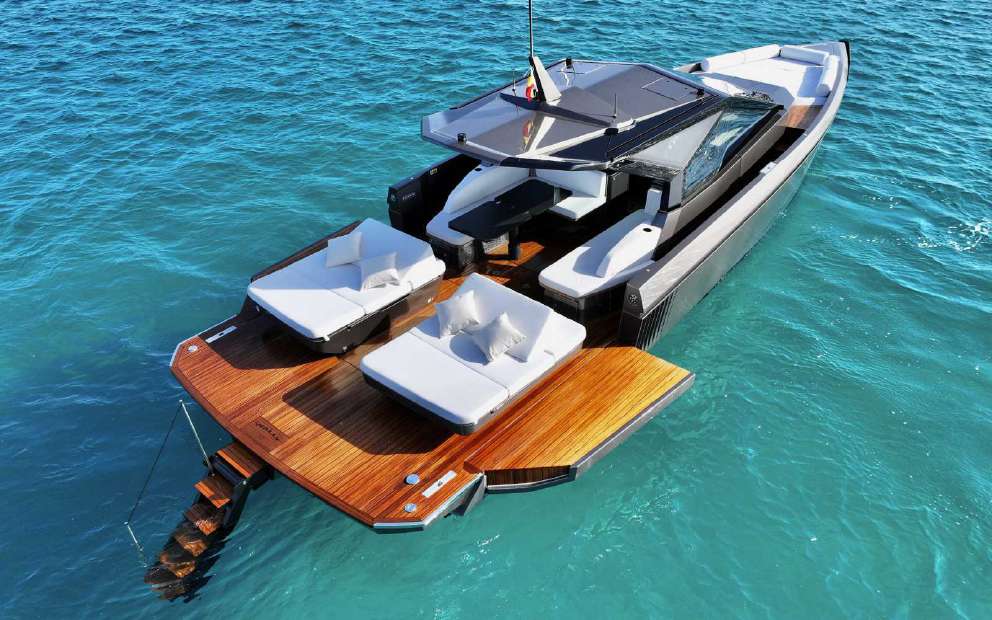 El Wally 50 ofrece confort y estilo para tu día en el mar. Los asientos modulares y los dos soleils en la cubierta trasera garantizan comodidad. La zona de cockpit sombreada es perfecta para relajarse. Los laterales abatibles en amarre crean una plataforma de buceo directa al mar.